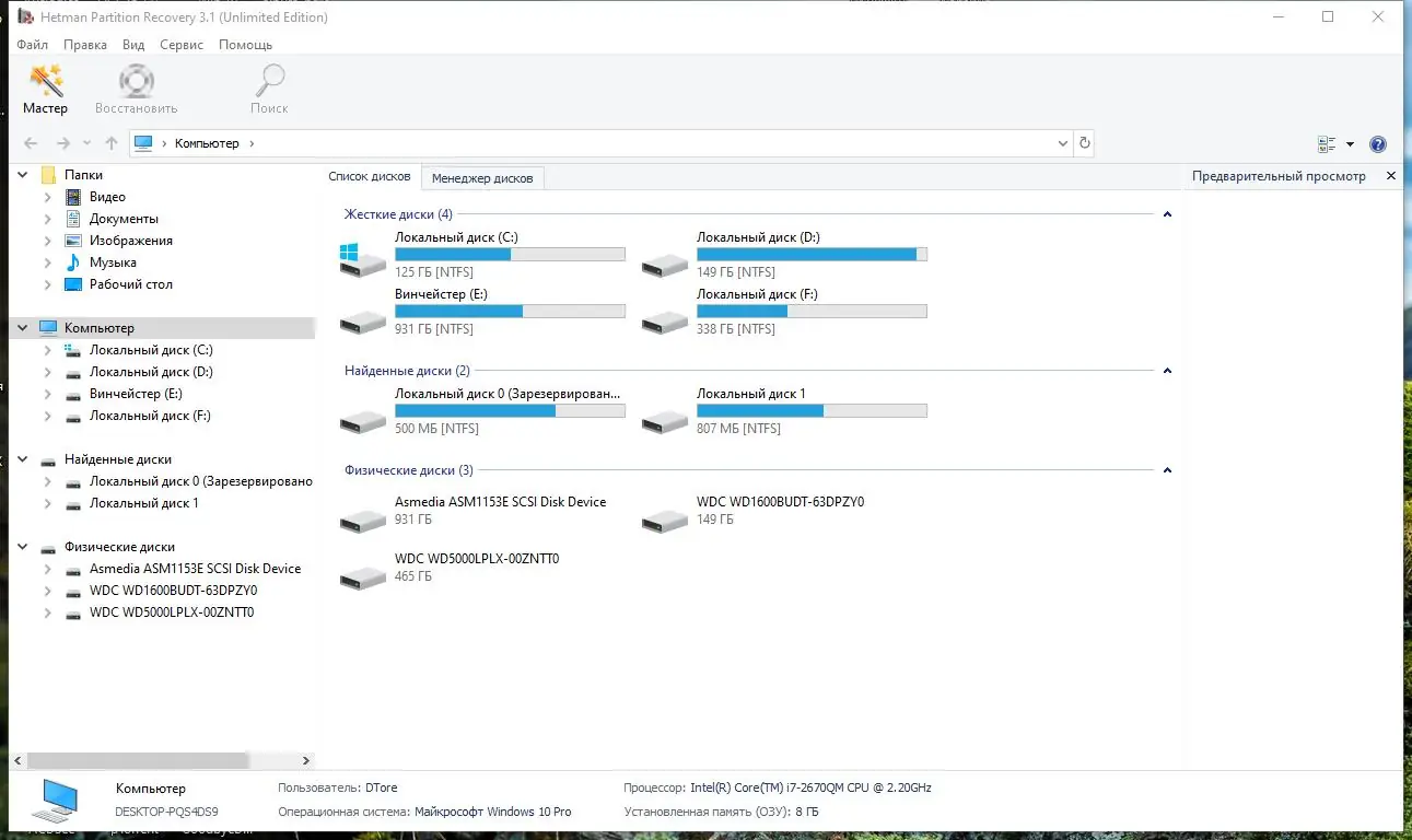 Для корректной работы с программой необходимо соответствие минимальным системным требованиям, что позволяет использовать Hetman Partition Recovery практически на любой современной системе под управлением Windows.