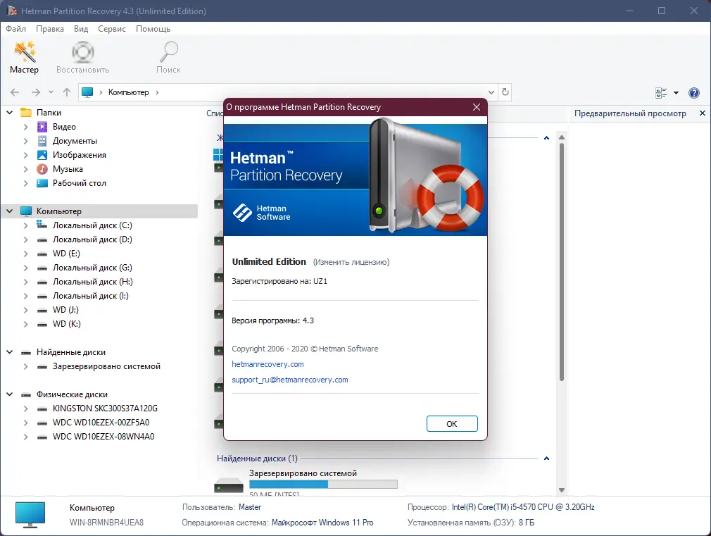 Hetman Partition Recovery — мощная программа для восстановления удалённых и потерянных данных с жёстких дисков и съемных носителей, а также исправления ошибок файловых систем NTFS, FAT и восстановления поврежденных разделов. Она обеспечивает надёжное и быстрое восстановление информации даже после форматирования и физических повреждений дисков.