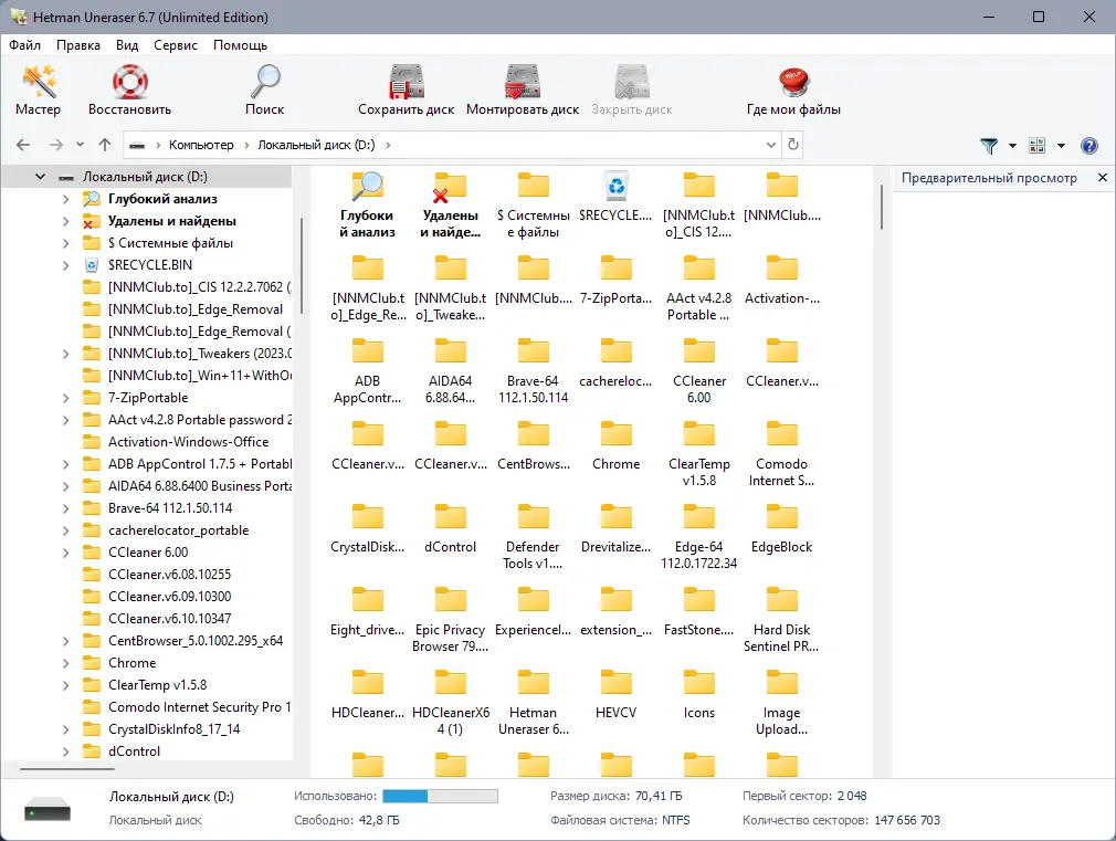 - Мгновенный просмотр и предварительный анализ файлов перед восстановлением.