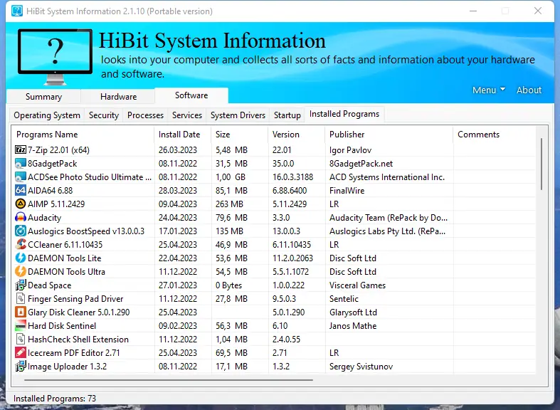Программа HiBit System Information — это универсальный инструмент для получения подробной информации о вашем оборудовании и программном обеспечении. Она позволяет быстро ознакомиться с характеристиками компьютера или ноутбука и обеспечивает удобный доступ к системным данным.