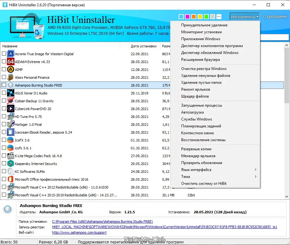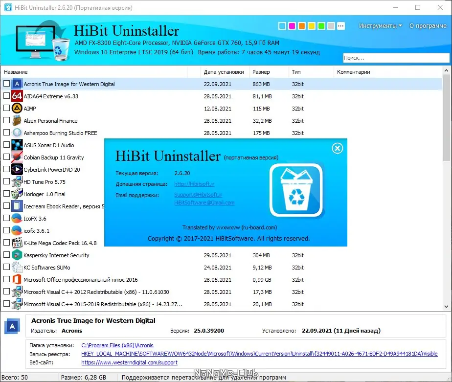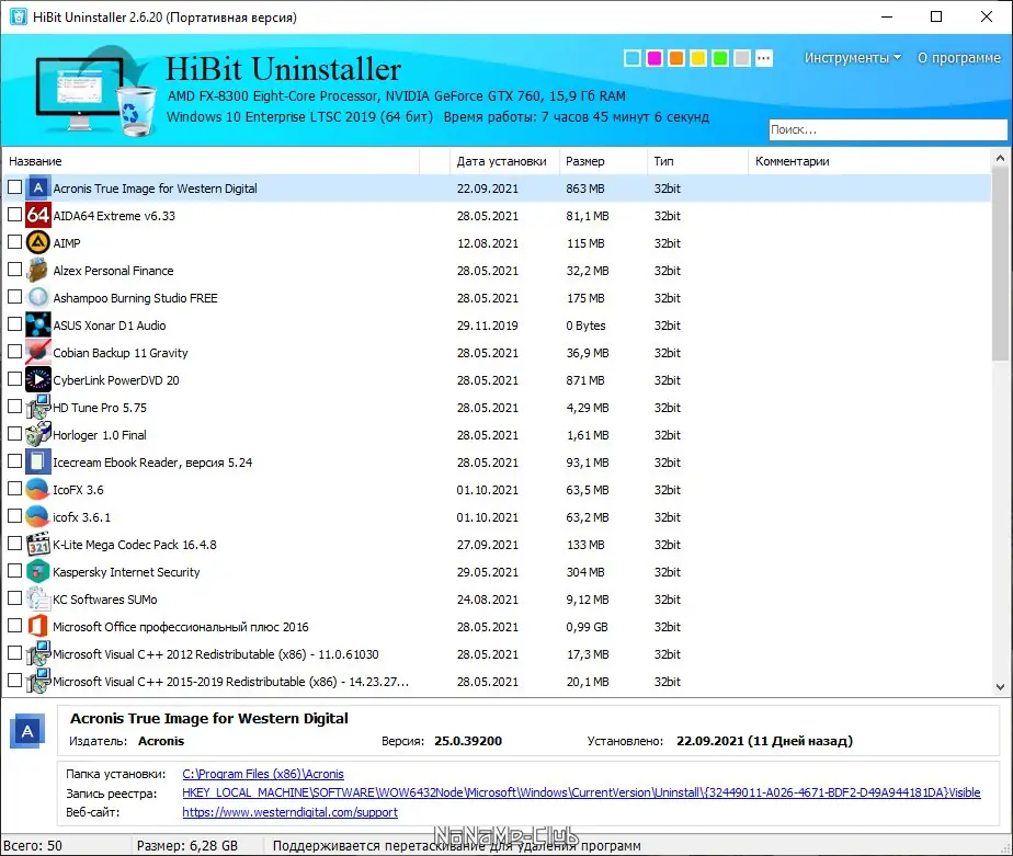 HiBit Uninstaller — это мощное и удобное решение для полного удаления программ на Windows. Оно позволяет быстро и эффективно избавляться от ненужных приложений, обеспечивая чистоту системы и освобождение диска. Интуитивный интерфейс делает процесс деинсталляции простым даже для начинающих пользователей. Встроенные средства очищают систему от остатков и хвостов, что повышает её производительность и стабильность. Особенность программы — возможность деинсталляции приложений из Windows Store в Windows 8 / 8.1 / 10 и более новых версиях.