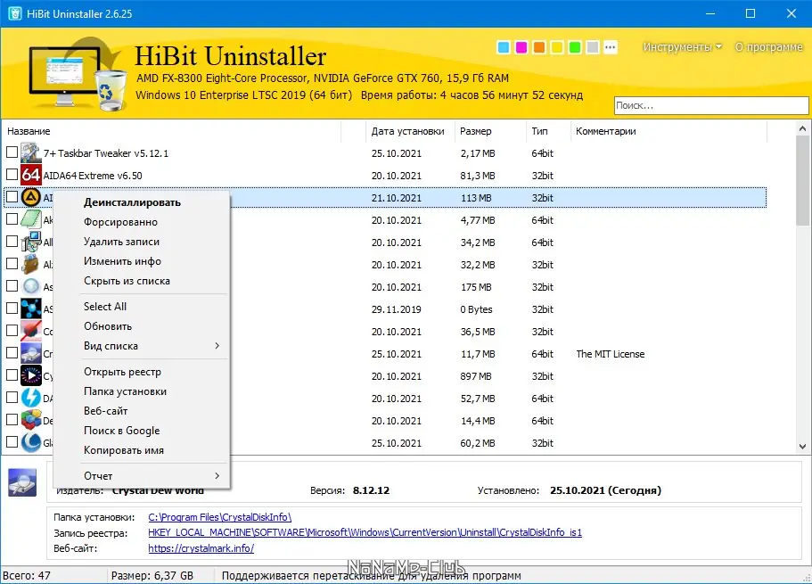 HiBit Uninstaller — мощное и удобное решение для полного удаления программ на Windows, которое обеспечивает быстрый и эффективный деинсталляционный процесс. Интерфейс программы интуитивно понятен и позволяет легко управлять установленными приложениями и системными компонентами.