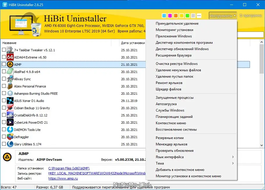 Данная программа разработана для профессиональной очистки системы от ненужных программ и остатков. Она позволяет не только полностью удалить выбранное программное обеспечение, но и провести глубокое сканирование на наличие остатков и хвостов, что обеспечивает максимальную чистоту системы после удаления. Дополнительные средства управления системой включают менеджер процессов, автозапуска, служб, планировщик задач и восстановление точек системы. Также есть возможность удаления приложений Windows Store в Windows 8 / 8.1 / 10, что облегчает управление современными приложениями и интегрированными компонентами.