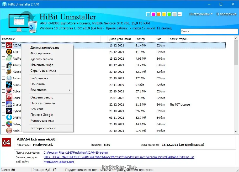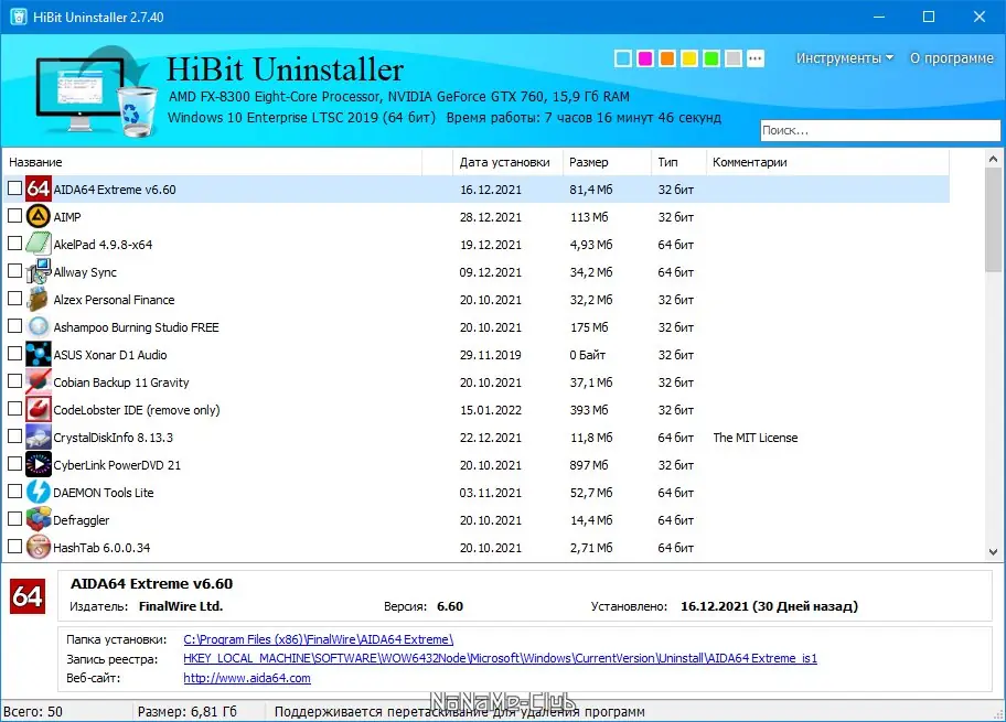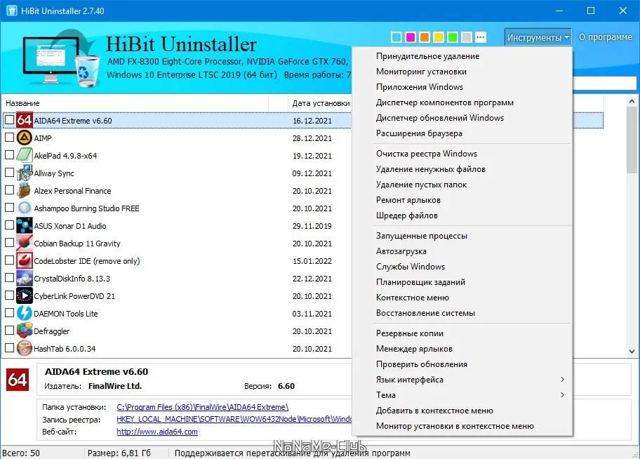 HiBit Uninstaller — это универсальный инструмент для деинсталляции программ, предназначенный для пользователей, стремящихся поддерживать чистоту и производительность своей системы Windows. Благодаря простому и дружественному интерфейсу, программа позволяет легко удалять любые программы, включая встроенные приложения из Windows Store, с последующим сканированием на наличие остатков и хвостов. Помимо деинсталляции, в арсенале есть мощные средства для очистки реестра, управления автозапуском, процессами и службами, а также планировщик задач и точек восстановления системы. Особенно полезной функцией является возможность добавления пункта Uninstaller в контекстное меню проводника, что ускоряет работу с программами.
