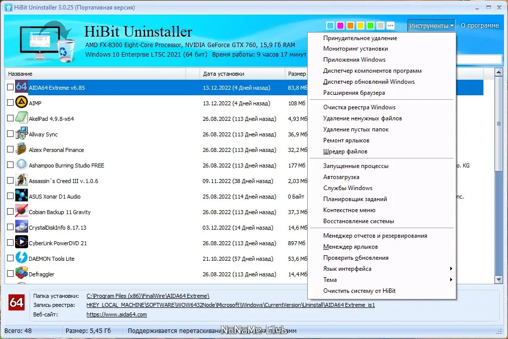 Разработанная для быстрой и полной деинсталляции программ на Windows, программа предоставляет удобный и интуитивно понятный интерфейс, что делает её удобным инструментом как для опытных пользователей, так и для новичков. Помимо стандартных функций удаления, она включает множество средств для очистки системы от остатков и хвостов, что способствует повышению производительности и стабильности системы. Особенностью является возможность удаления приложений из Windows Store с помощью встроенного менеджера. После удаления программа автоматически проводит сканирование на наличие остатков и позволяет расширенное сканирование по желанию пользователя.