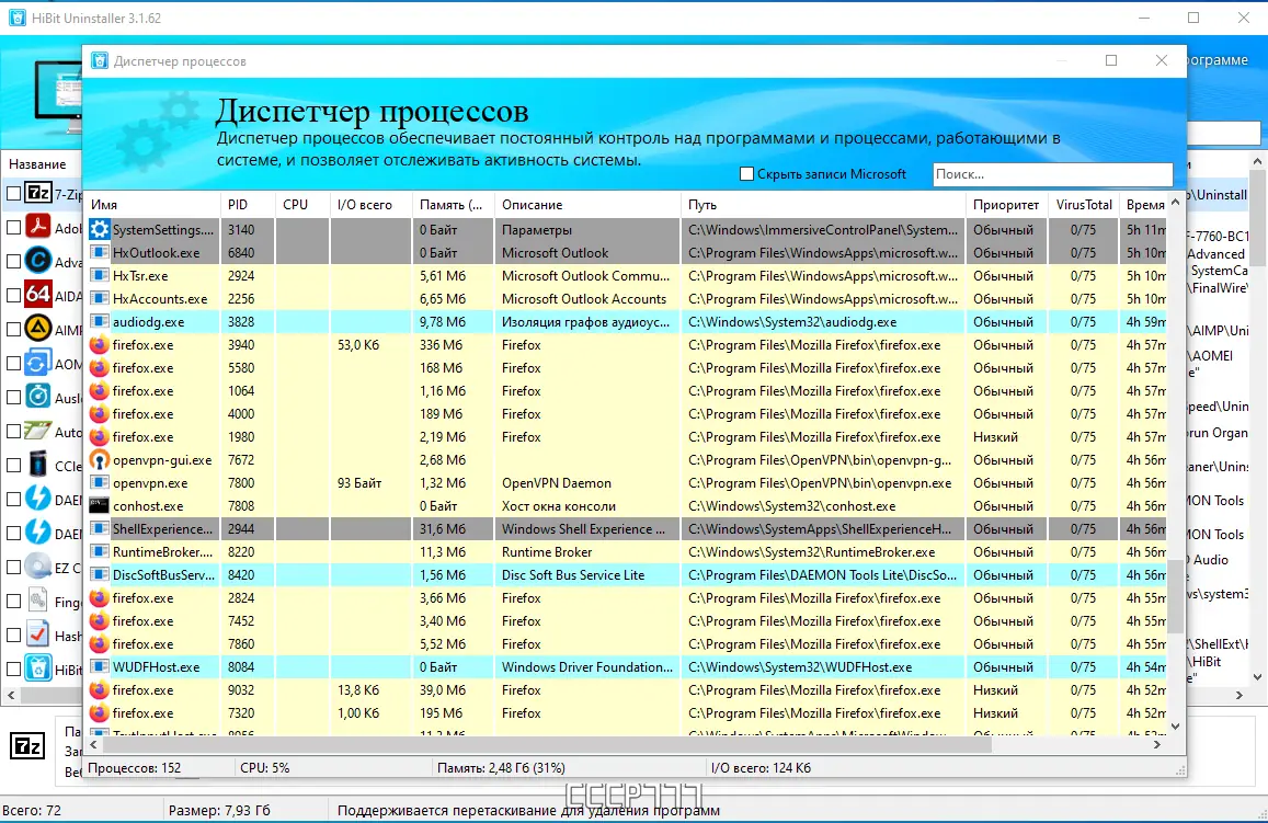 HiBit Uninstaller — универсальное решение для полного и быстрого удаления программ в операционной системе Windows. Интуитивно понятный интерфейс позволяет легко управлять установленными приложениями, освобождая систему от ненужных программных компонентов и остатков, которые зачастую остаются после стандартных деинсталляций. Среди уникальных возможностей — удаление приложений из Windows Store, а также мощное сканирование для поиска и устранения хвостов после удаления.