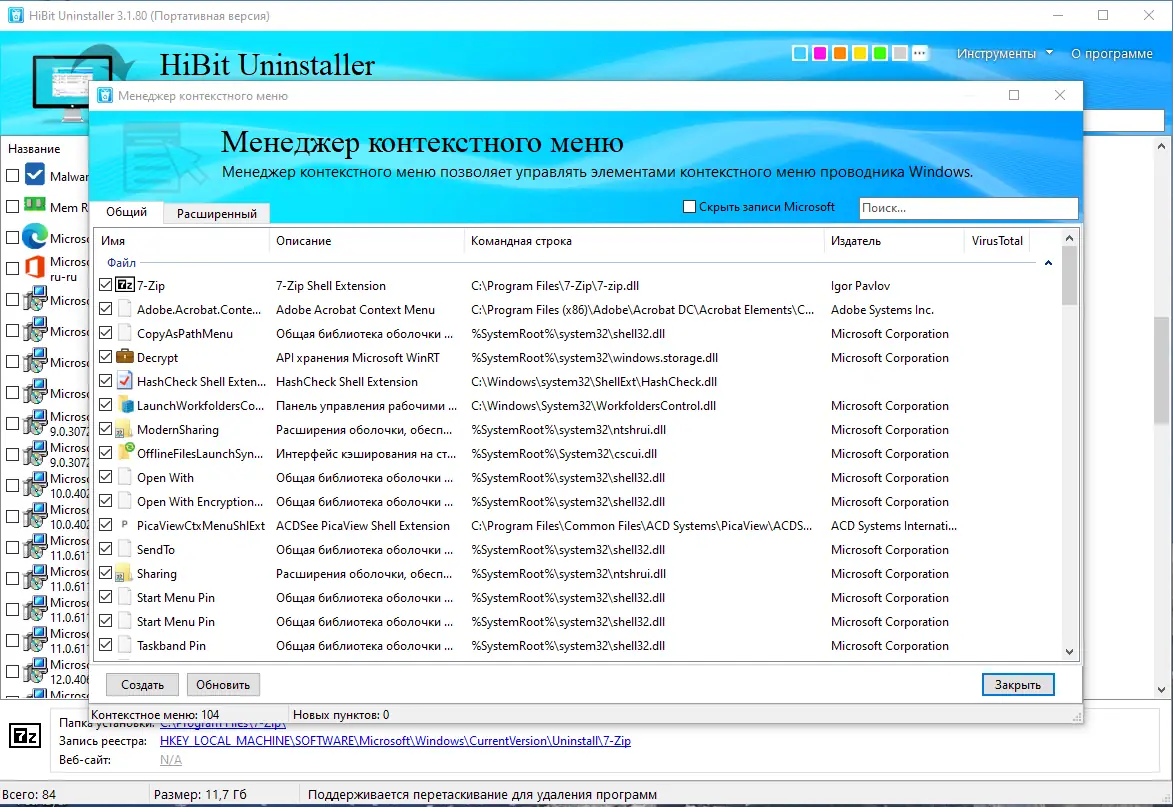 HiBit Uninstaller — эффективно созданное решение для удаления программ на операционной системе Windows. Обеспечивает быстрое и полное удаление приложений с помощью интуитивно понятного интерфейса. Помимо стандартных функций деинсталляции, в программе реализованы многочисленные инструменты для очистки системы, управления запущенными процессами, автозагрузкой и службами. Особенностью является возможность удаления приложений Windows Store, что делает работу с современными системами более удобной. После деинсталляции проводится сканирование на наличие остатков и хвостов, а при необходимости — расширенное сканирование для более глубокой очистки системы.