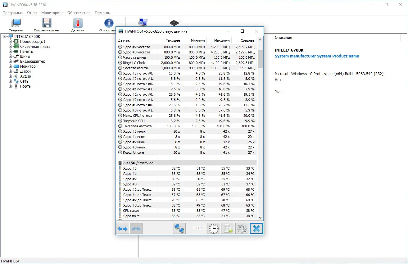 - Запустить файл HWiNFO.exe и начать работу;