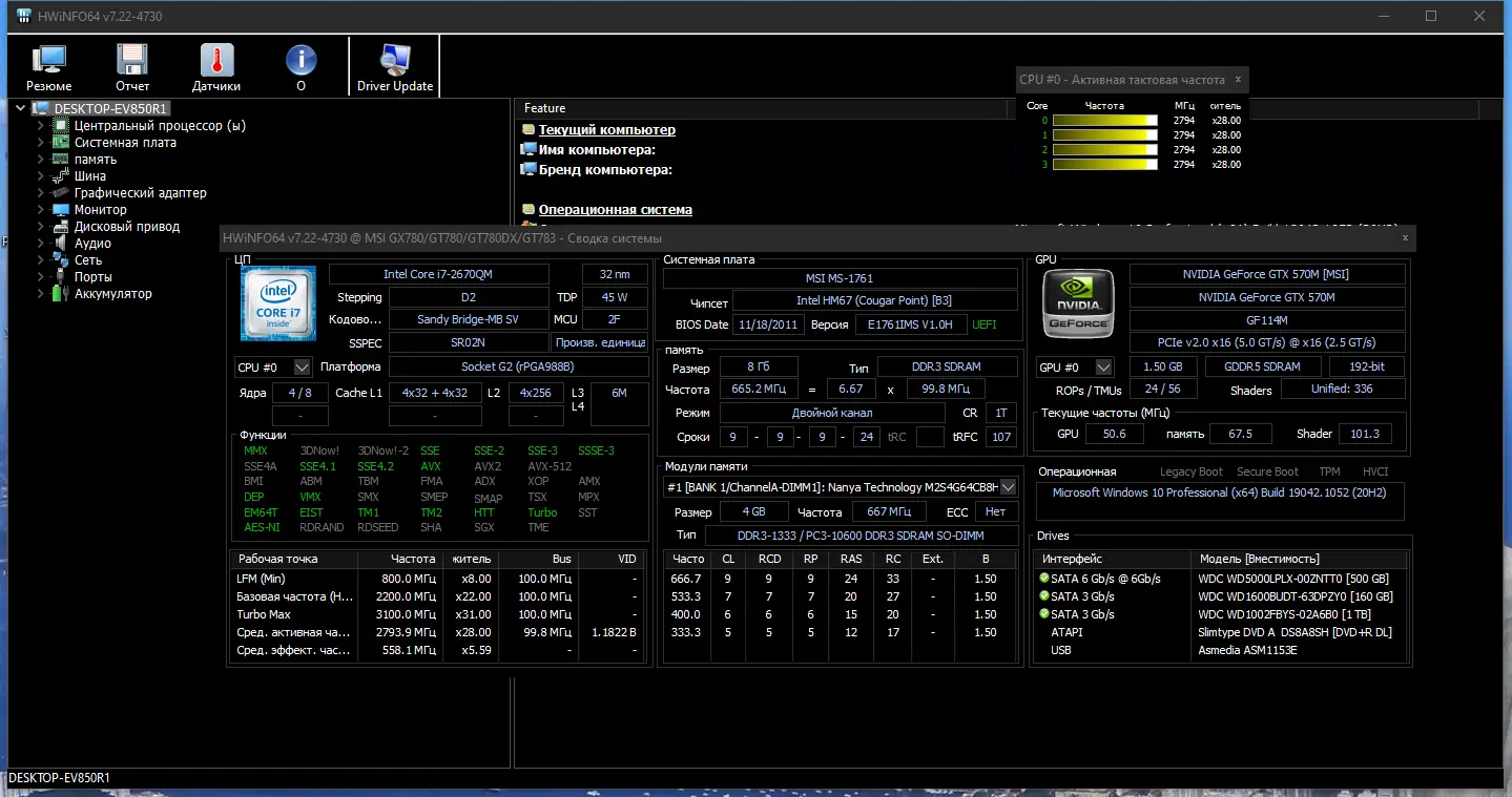 - Проведение детальной диагностики аппаратных компонентов с возможностью просмотра текущих значений и исторических данных