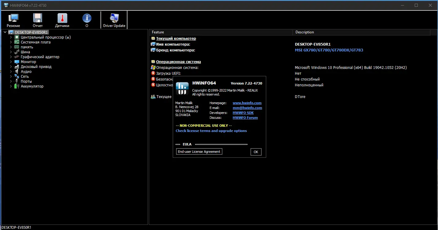 HWiNFO — мощный инструмент, который собирает все важные данные о состоянии аппаратных компонентов вашего ПК, включая процессоры, видеокарты, оперативную память, HDD, SSD, сетевые адаптеры и датчики. Возможность работы в портативном режиме делает её удобной для использования без установки, а совместимость с различными версиями Windows — от Windows 7 до Windows 11 — обеспечивает широкую доступность. Программа позволяет получать подробные отчёты, отслеживать параметры и выполнять диагностику системы, что делает её незаменимым помощником как для новичков, так и для опытных пользователей.