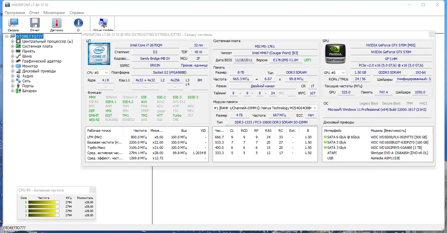 HWiNFO — мощный и универсальный инструмент для получения полного отчёта о состоянии аппаратных компонентов компьютера, включая температуру, показатели датчиков и системные параметры. Его можно использовать как бесплатно, так и в портативной версии без установки, что делает его удобным для диагностики в любой ситуации.