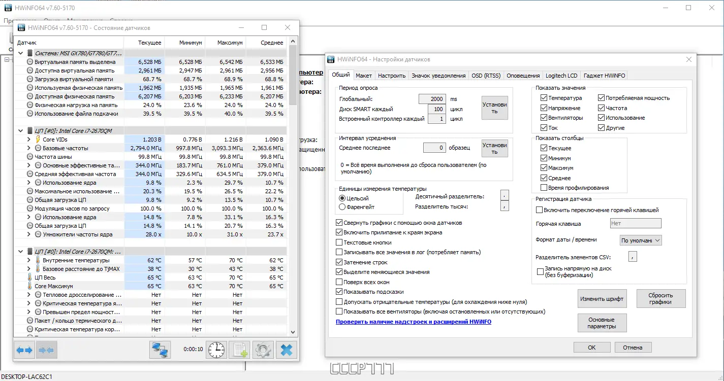 - Запустите программу, настройте отображение нужных датчиков и приступайте к мониторингу.