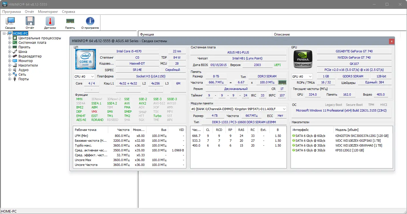 HWiNFO отличается высоким уровнем детализации системы и небольшим потреблением ресурсов. Удобен для постоянного мониторинга и скорого получения информации о состоянии оборудования.