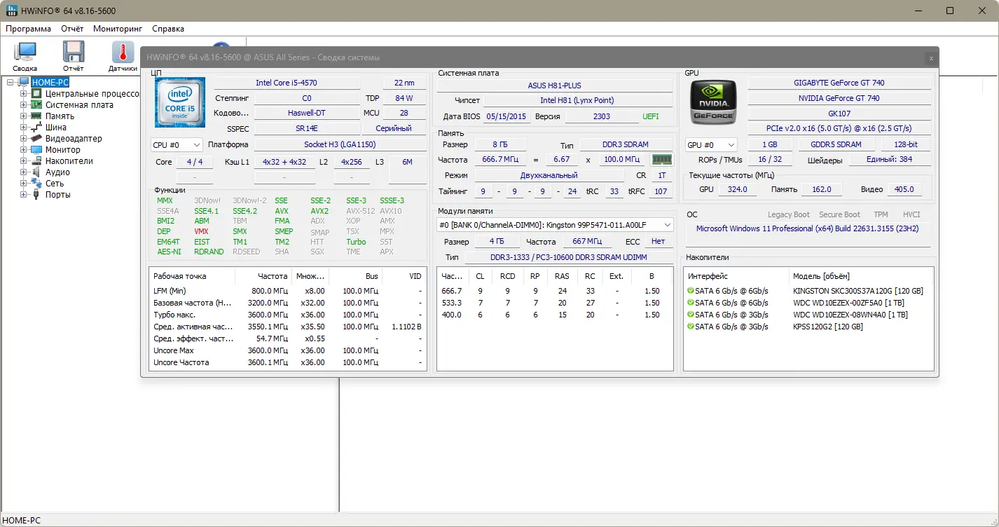 Этот программный продукт предоставляет детальный анализ аппаратных ресурсов и инструмент для мониторинга текущего состояния системы. HWiNFO собирает подробные сведения о характеристиках процессоров, материнских плат, памяти, шин, видеокарт, мониторов, дисков, аудио устройств и сетевых адаптеров. Он позволяет получать актуальные показатели температуры, потребления ресурсов, а также запускать тесты для оценки производительности. Легкий в использовании, гибкий и не нагружающий систему, он подходит как новичкам, так и опытным пользователям, желающим контролировать качество и исправность своих устройств.