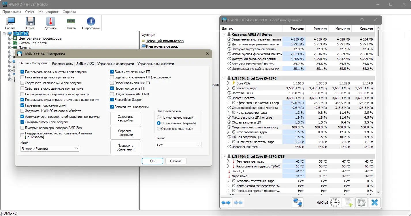 Обратите внимание, что некоторые функции могут требовать прав администратора для полного доступа к датчикам и аппаратным компонентам.