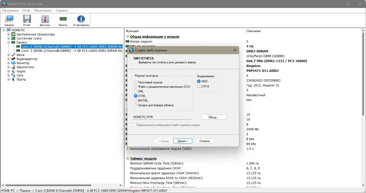 - Генерация отчётов в различных форматах (TXT, CSV, XML, HTML, MTHML) для последующего анализа или сохранения.