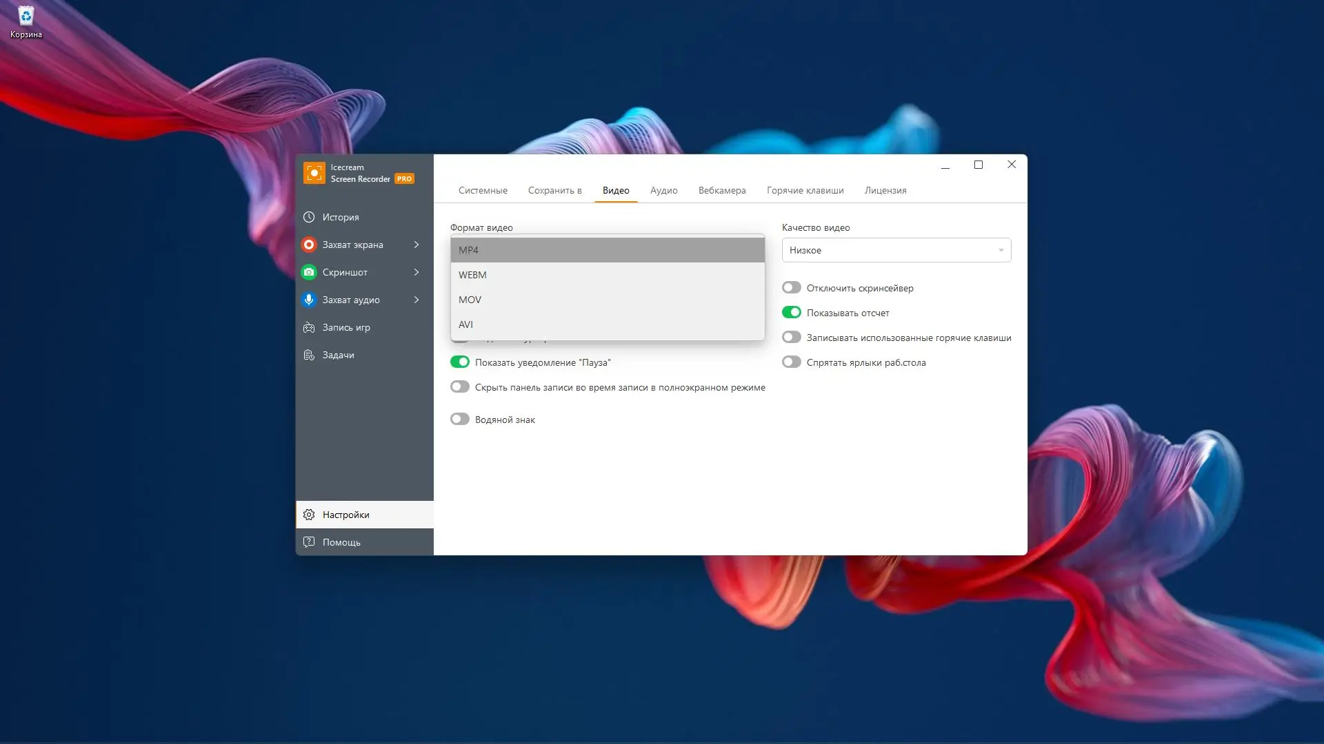 - Запись как системного звука, так и микрофона для полноценных видео.