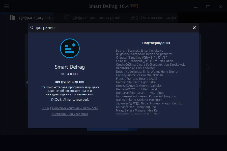 - Высокоскоренная дефрагментация с использованием многопоточного движка IObit.