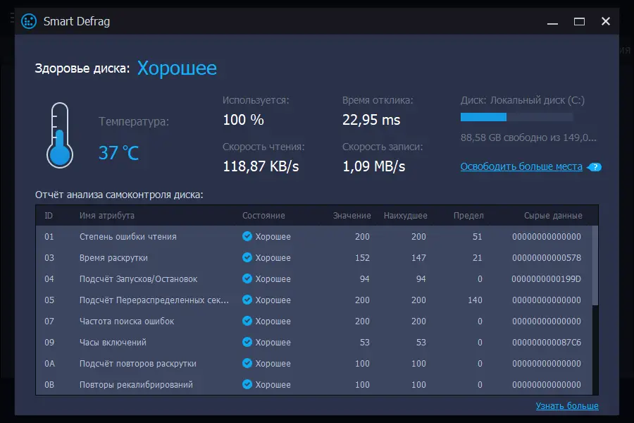 - Быстрая и эффективная дефрагментация за счет современных технологий и специальных механизмов загрузки.