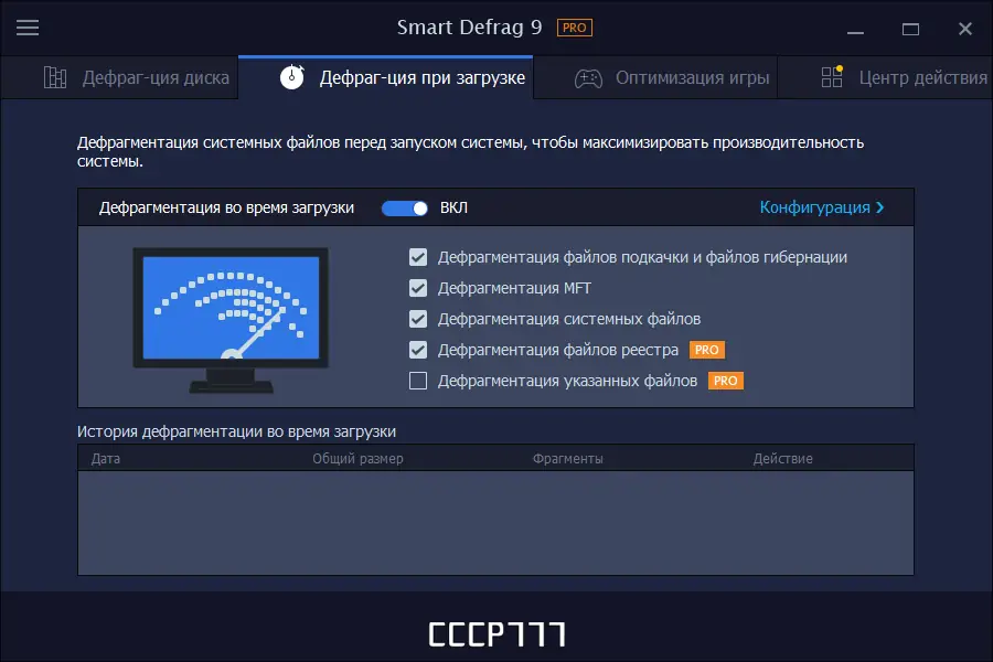 - Очень быстрая и эффективная дефрагментация с использованием движка IObit и технологии дефрагментации при загрузке системы.