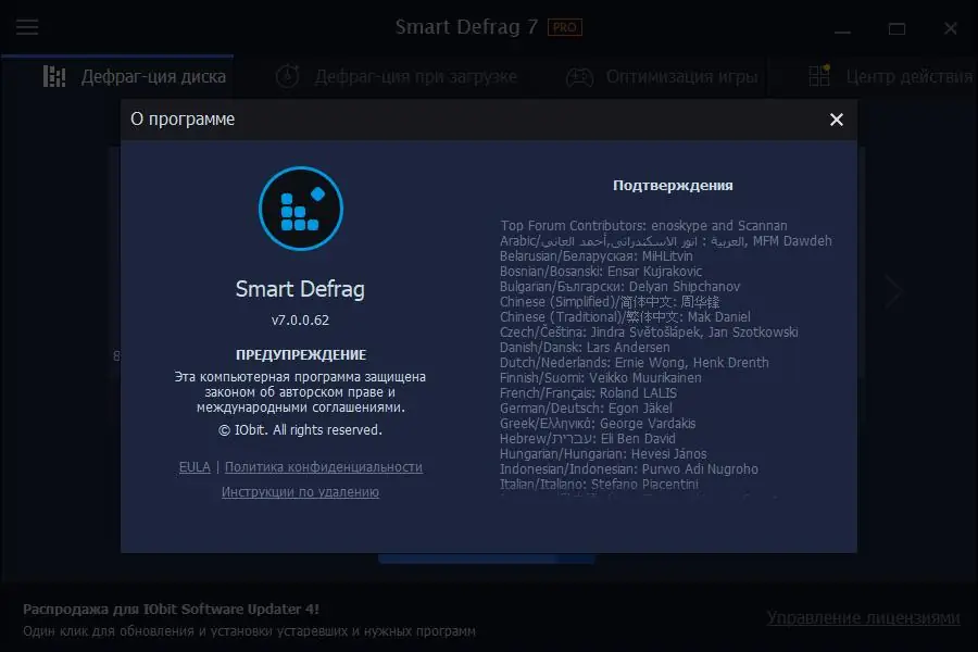 - Очень быстрая и эффективная дефрагментация благодаря использованию движка IObit и технологии дефрагментации при загрузке системы.