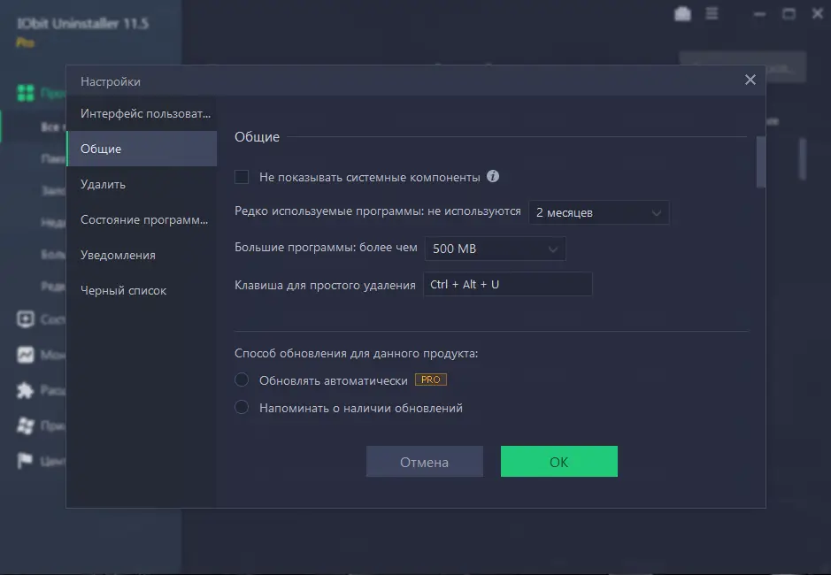 - Автоматическая очистка остатков программ при удалении другими деинсталляторами в Pro-версии