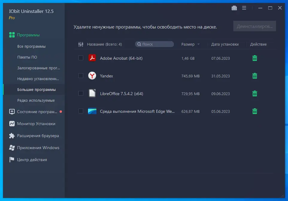IObit Uninstaller — мощный инструмент для эффективного удаления программ и очистки системы от остатков. Удобный и быстрый, он справляется с задачами профессионально, обеспечивая чистоту и порядок на вашем компьютере.