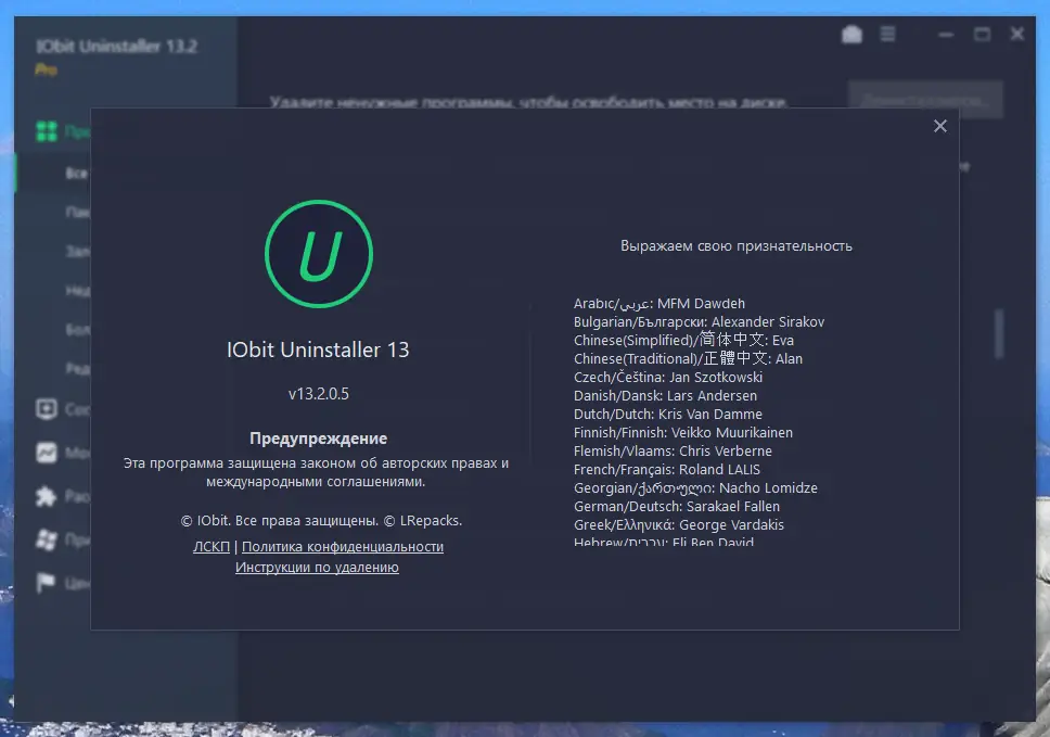Данная программа представляет собой мощный и удобный инструмент для полной и безопасной деинсталляции программ и папок. Она обнаруживает все установленные приложения, позволяет выполнять пакетное удаление одним щелчком, а также устраняет остаточные файлы, папки и записи в реестре. Благодаря функциям «Мощное сканирование» и «Принудительное удаление» вы гарантированно избавитесь от всех следов нежелательных программ и расширений. Простая установка и понятный интерфейс делают этот инструмент незаменимым помощником для управления программами на компьютерах с Windows 7, 8/8.1, 10 и 11, в архитектурах x32 и x64 Bit.