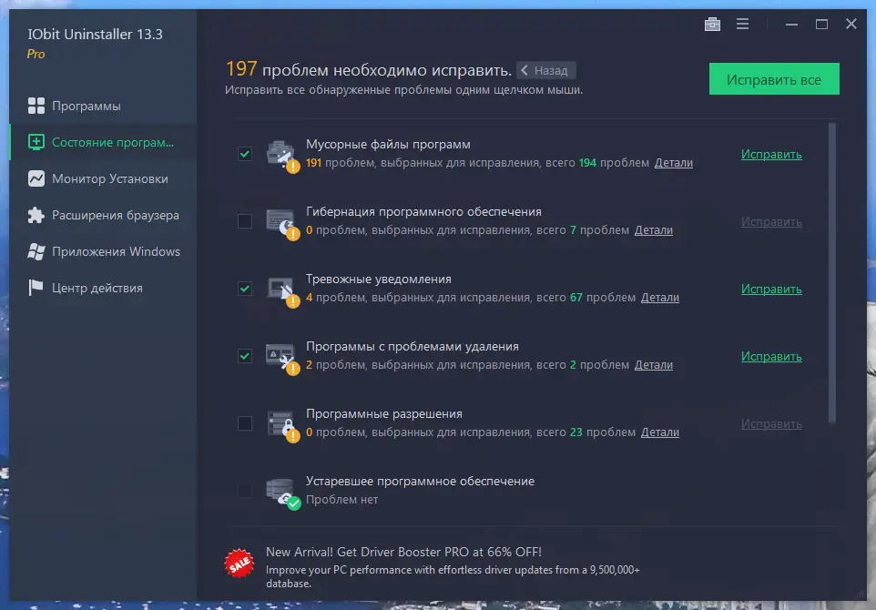 IObit Uninstaller Pro представляет собой удобный инструмент, который поможет Вам удалить нежелательные программы и папки без каких-либо хлопот. Он обнаруживает и классифицирует все установленные программы, а также позволяет выполнять пакетное удаление приложений всего одним щелчком мыши. С полезными функциями «Мощное сканирование» и «Принудительное удаление» Вас никогда не будут беспокоить остатки программ (файлы, папки, записи реестра) или следы панелей инструментов. Мгновенно устанавливается в систему и является простым в использовании и мощным по возможностям удаления. Если у Вас есть важные файлы, которые должны быть удалены, программа поможет с функцией «Шредер файлов».
