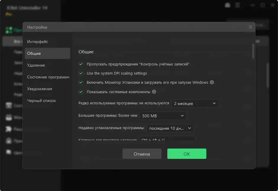 - Автоматическое удаление остатков при использовании других деинсталляторов