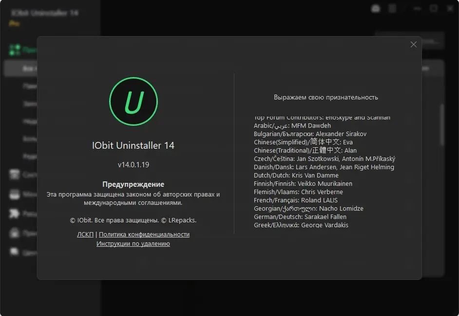 Итак, IObit Uninstaller Pro — это надежное решение для полного удаления нежелательных приложений, панелей инструментов и плагинов, а также для очистки следов их работы. Его функционал включает обнаружение и классификацию всех установленных программ, выполнение пакетного удаления всего одним щелчком мыши и избавление от остатков (файлы, папки, записи реестра). Благодаря функциям «Мощное сканирование» и «Принудительное удаление» вы можете быть уверены в полном удалении даже самых упрямых программ или остатков. Простая установка и интуитивный интерфейс позволяют легко настроить программу под свои нужды. В дополнение встроен «Шредер файлов» для безвозвратного уничтожения данных, а автоматическое обновление обеспечивает актуальность базы данных и возможностей.