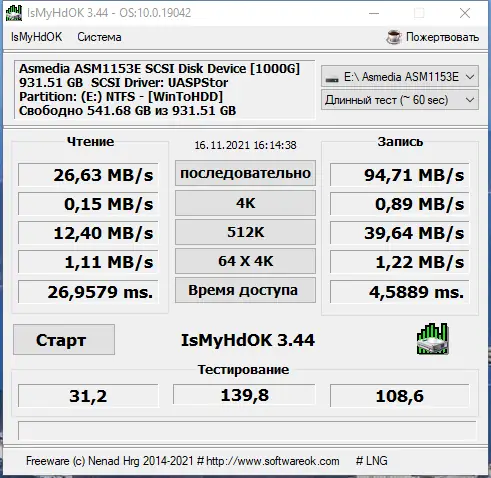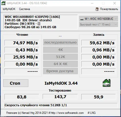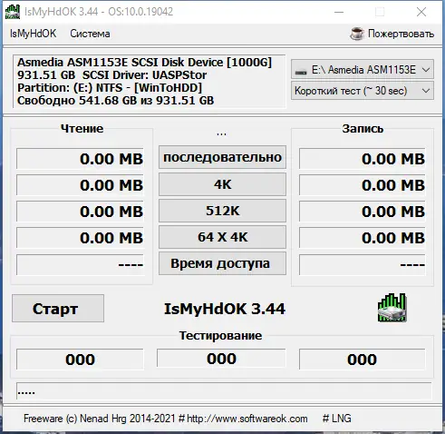IsMyHdOK — небольшая, но эффективная утилита для проверки производительности жестких дисков и USB-накопителей. Она позволяет быстро оценить скорость работы вашего жесткого диска или SSD, а также провести более длительный тест при необходимости. Программа легко работает в портативном режиме и подходит для различных систем.