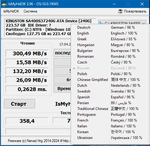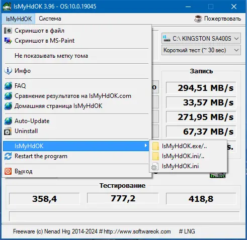 - При необходимости создайте файл конфигурации IsMyHdOK.ini в рабочей директории для настройки портативного режима.