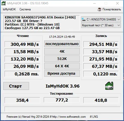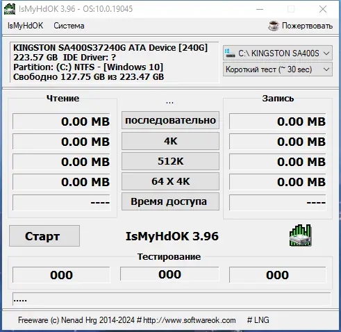 IsMyHdOK — компактная портативная утилита для тестирования скорости и надежности жестких дисков. Она подходит для проверки дисков как на компьютерах с Windows 7, 8/8.1, 10, 11, так и на более старых системах. Благодаря простому интерфейсу и нескольким режимам теста, пользователь может выбрать быстрый или более тщательный анализ работы своего диска. Программа не требует установки и может использоваться бесплатно, что делает её удобным инструментом для пользователей, отдающих предпочтение минимализму и эффективности.