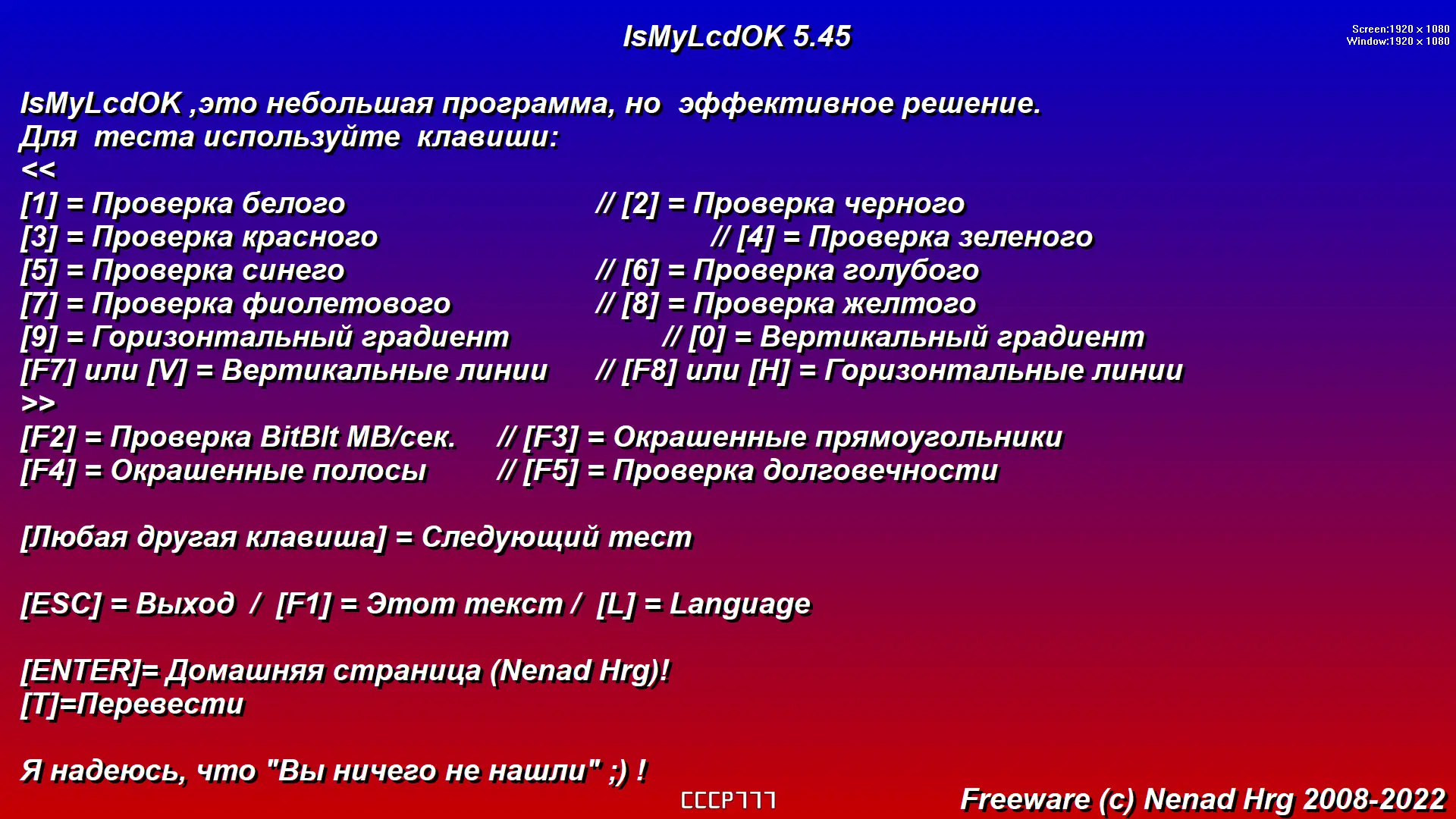 IsMyLcdOK — небольшая, бесплатная утилита, предназначенная для выявления дефектных пикселей на LCD-мониторах. Благодаря интуитивно понятному интерфейсу и возможности запуска без установки, она легко применима как для домашнего, так и для профессионального использования. В процессе проверки отображаются экраны разных цветов, что помогает обнаружить даже самые мелкие повреждения, которые могут быть незаметны при стандартных условиях. Программа совместима с операционными системами Windows 7, 8/8.1, 10 и 11 и поддерживает архитектуры x32 и x64 Bit.