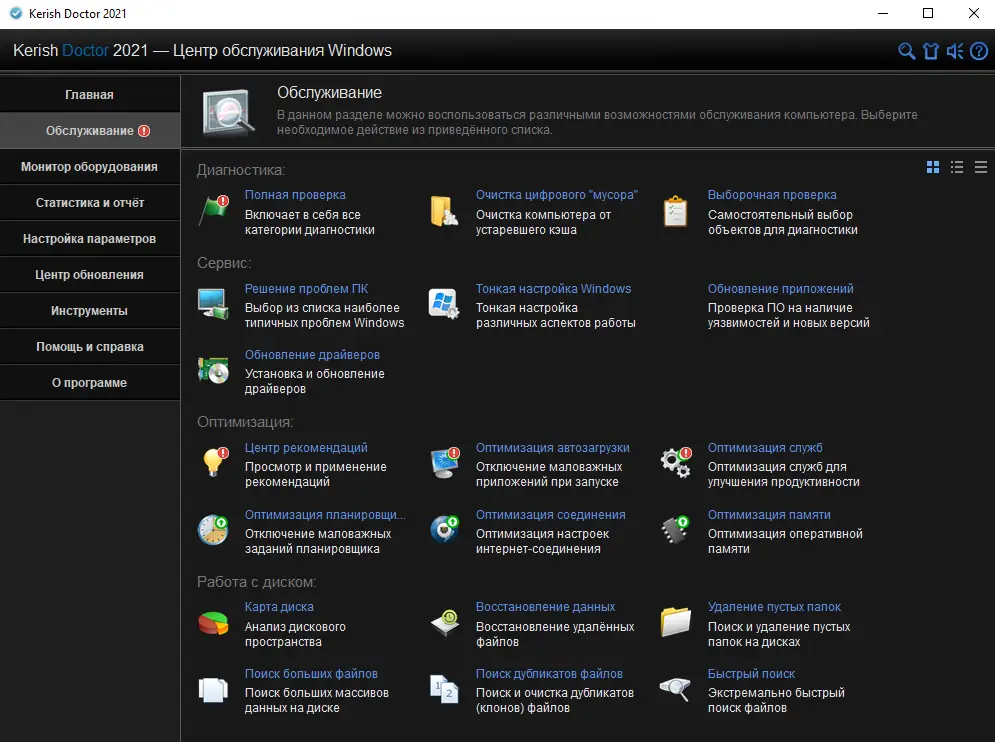 Kerish Doctor — это универсальное решение для автоматического ухода за компьютером под управлением ОС Windows, обеспечивающее стабильность и безопасность системы.