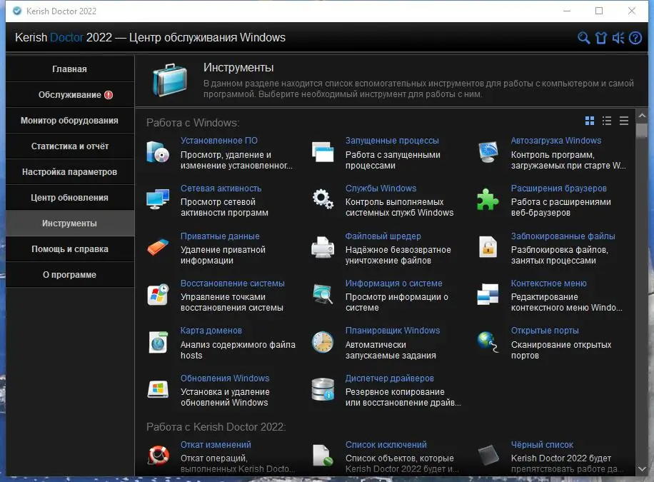 Kerish Doctor объединяет системы профилактики с возможностью индивидуальной настройки, обеспечивая безопасность и оптимизацию работы Windows, а также предотвращая сбои и системные ошибки.