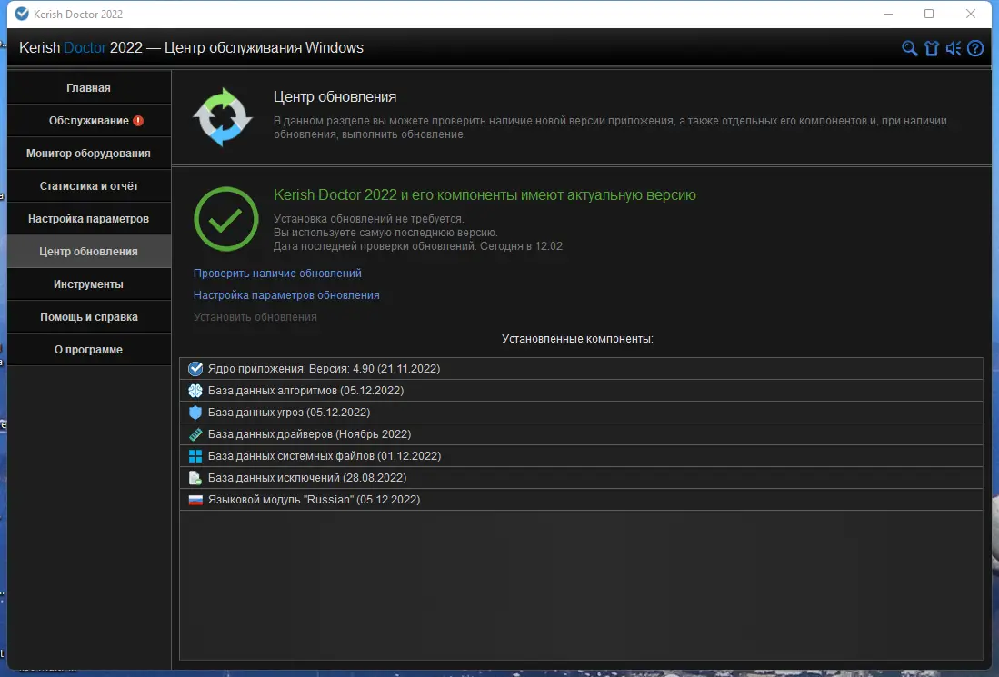 - Запустите KerishDoctorPortable.exe, после чего база данных и ядро программы можно обновлять при необходимости.