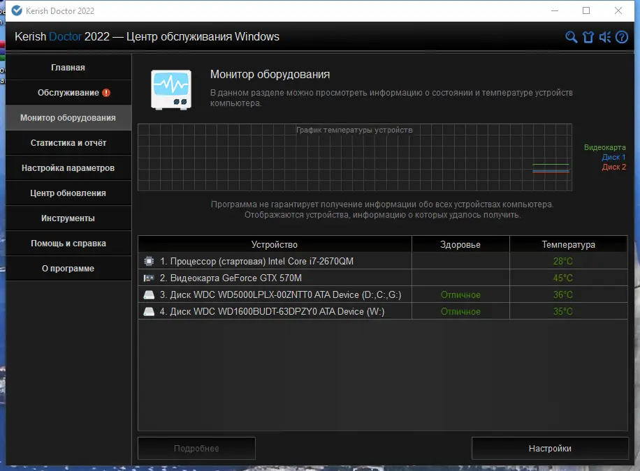 - Контроль температуры компьютера и профилактика аппаратных сбоев.