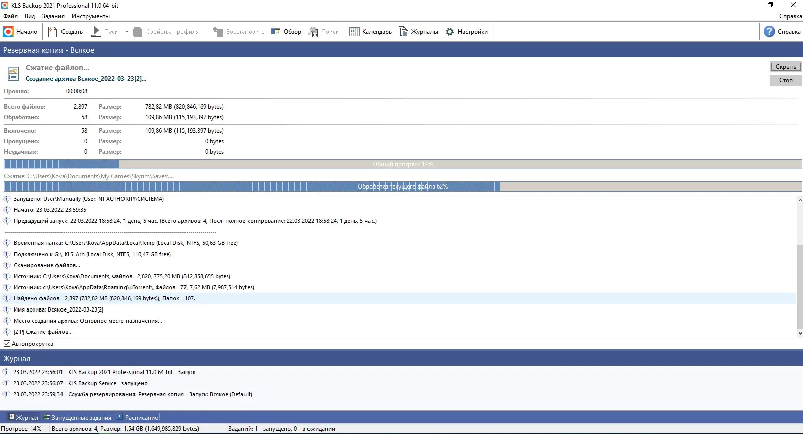 - Возможность автоматического и ручного резервного копирования, планирование задач