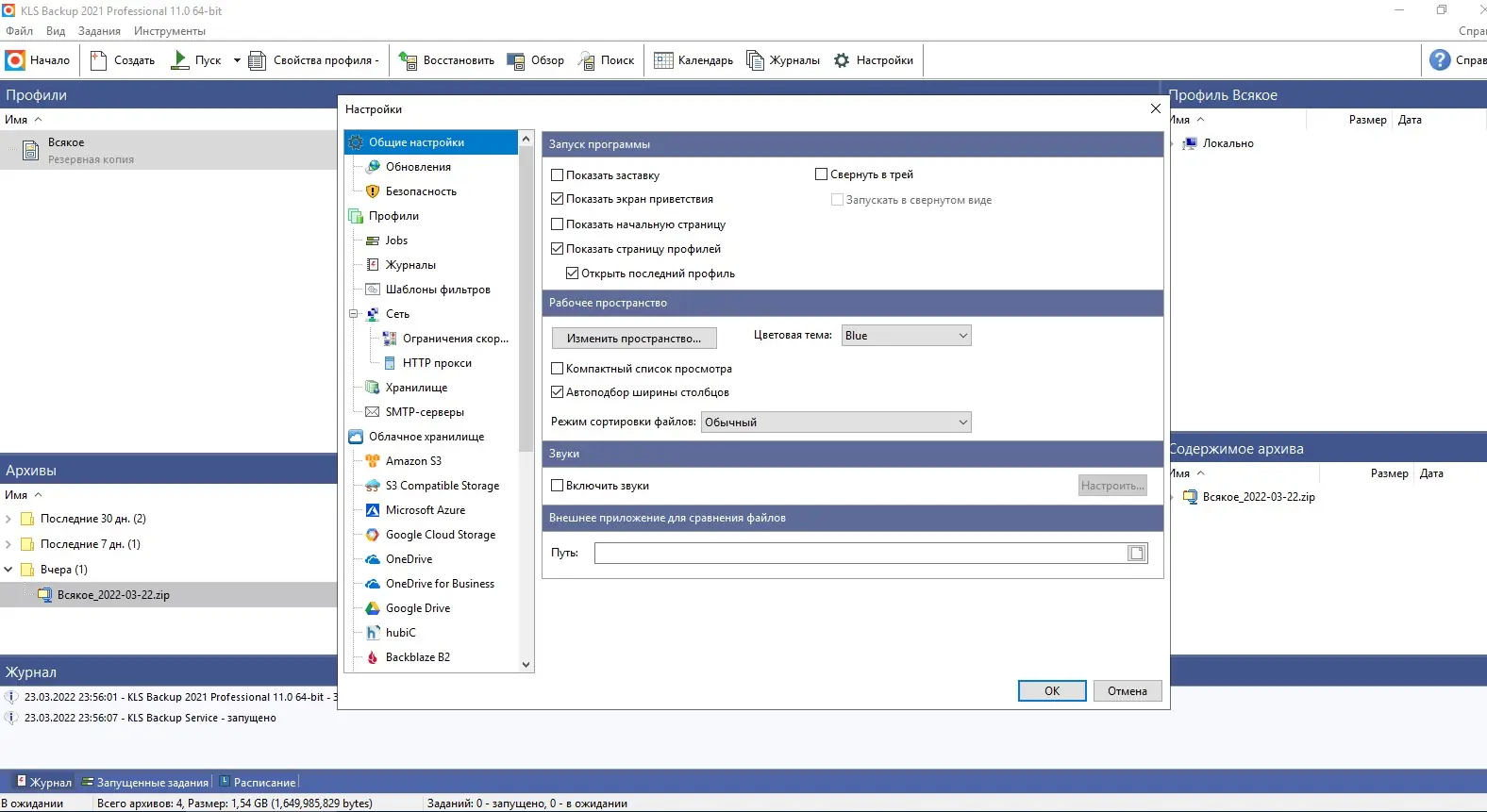 - Шифрование архивов AES, поддержка SSL/TLS для передачи данных