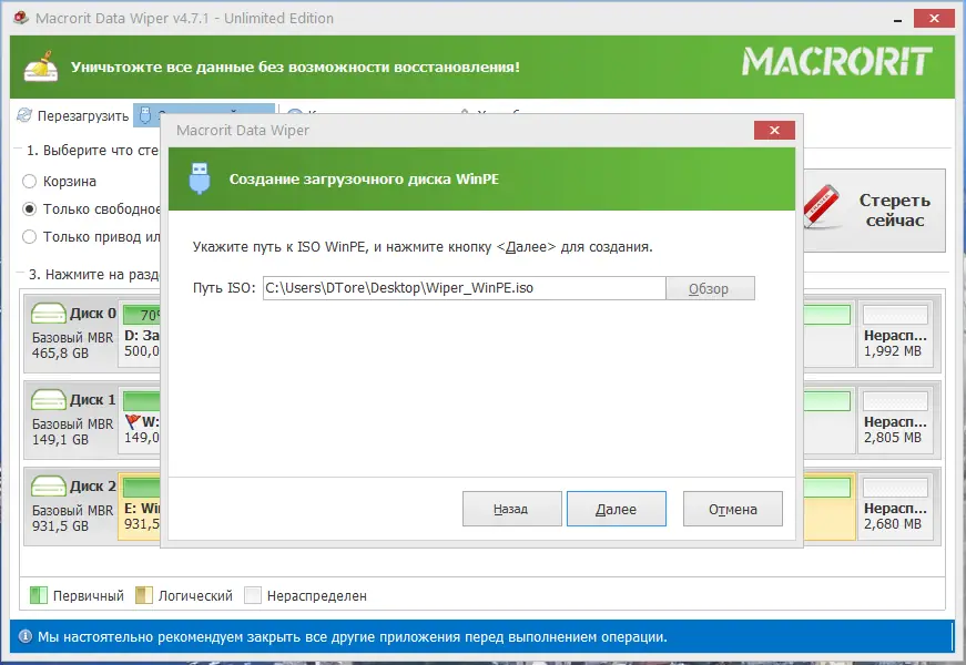 - Полное и безопасное удаление данных с любого типа носителей, включая системный или загрузочный раздел.