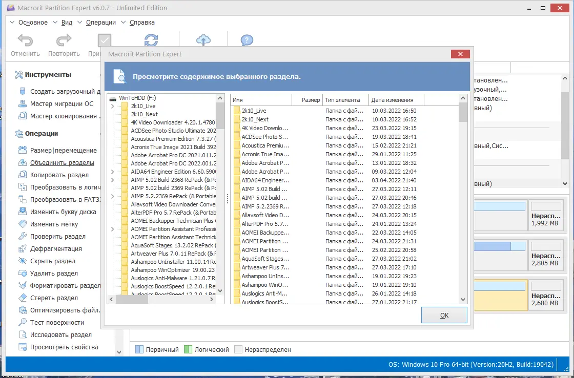 - Быстрое перемещение и перенос разделов с сохранением всей информации.