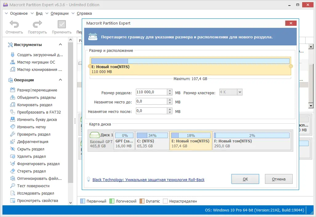 Macrorit Partition Expert Unlimited Edition предоставляет пользователям профессиональные возможности по управлению дисковым пространством. Благодаря уникальной технологии защиты данных и лучшему алгоритму перемещения разделов, программа гарантирует 100% сохранность информации и максимально быструю обработку операций. Она обладает интуитивно понятным интерфейсом и высокой производительностью, что делает её идеальным решением как для домашних пользователей, так и для профессионалов. Поддержка дисков объемом свыше 2 Тб, работа с дисками MBR и GPT – всё это обеспечивает гибкость и надежность для современных систем.