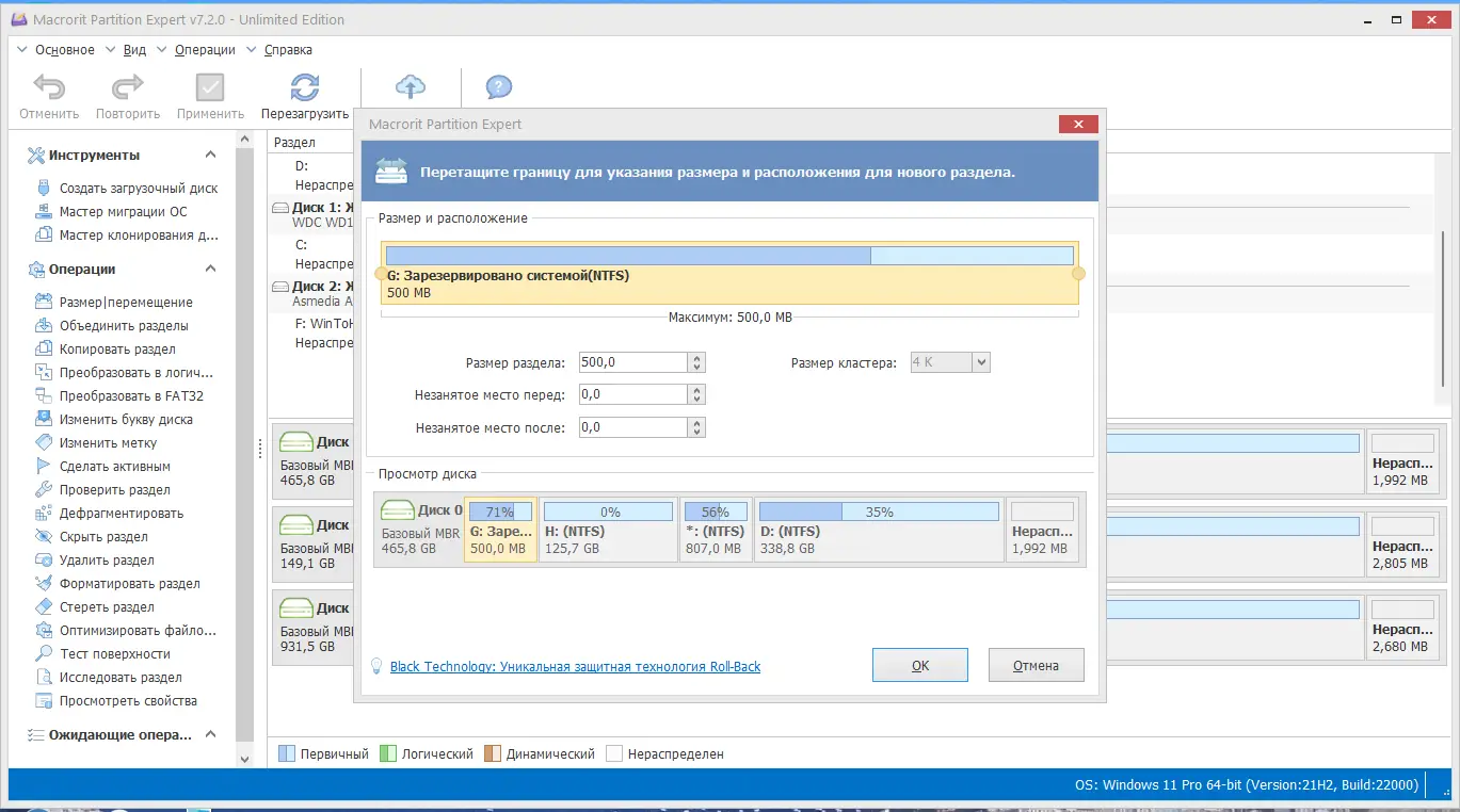 Программа совместима с дисками более 2 Тб, а также поддерживает оба типа схем разметки: MBR и GPT, что обеспечивает широкий спектр возможностей для различных сценариев использования. Удобный интерфейс и многозадачность позволяют эффективно управлять несколькими разделами одновременно, сохраняя при этом высокую производительность системы.