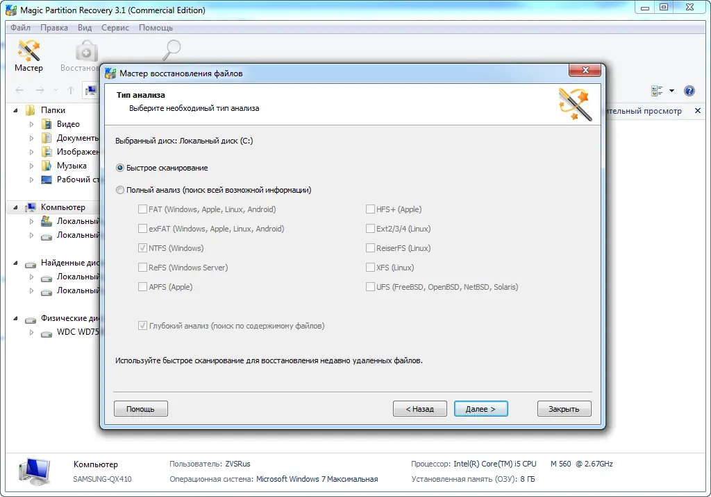 Если диск сильно поврежден или его структура сбита, Magic Partition Recovery сможет построить новую файловую систему, восстановить таблицу разделов и помочь вернуть доступ к утраченной информации. Поддерживаются все основные версии Windows — от XP до Windows 11 — и все типы носителей информации. Операционная система и носитель не создадут препятствия для успешного восстановления.