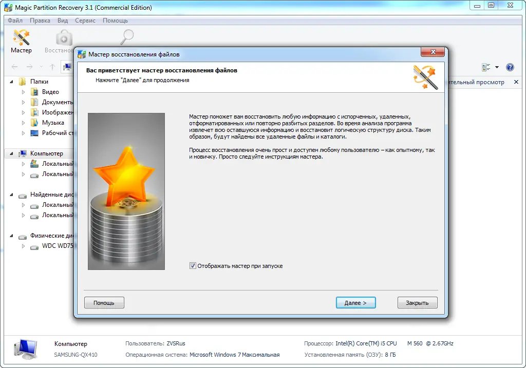 Magic Partition Recovery позволяет восстанавливать удаленную информацию с различных носителей, таких как жесткие диски, USB-устройства, карты памяти и съемные диски. Она эффективно исправляет ошибки в структуре системных дисков, восстанавливает поврежденные, удаленные или перезаписанные разделы и файловые системы. Благодаря автоматическому режиму и сложным алгоритмам, программа сканирует носитель и восстанавливает исходную файловую систему, даже если она полностью отсутствует или повреждена. Интуитивно понятный интерфейс, похожий на стандартный проводник Windows, делает использование программы доступным даже для неопытных пользователей, а встроенный пошаговый мастер упрощает процесс восстановления данных.