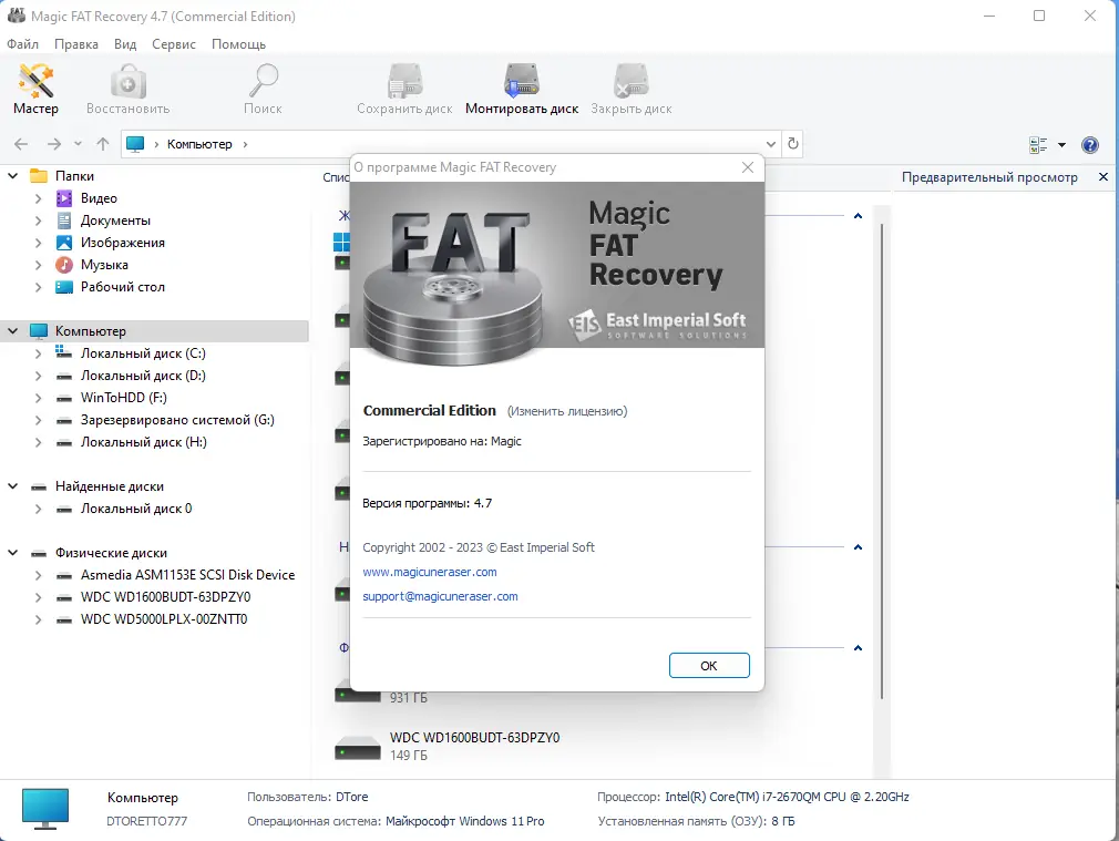 Это мощный набор портативных инструментов для восстановления различных типов данных, разработанный компанией East Imperial Soft. Предназначена для быстрого и безопасного восстановления файлов на компьютерах с операционными системами Windows 7, 8/8.1, 10 и 11, а также совместима с системами x32 и x64 Bit.