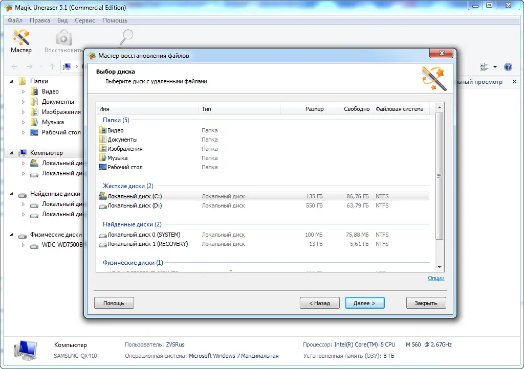 Magic Uneraser — это мощная программа для восстановления удалённых файлов всех типов, которая работает со всеми популярными носителями и файловыми системами. Она позволяет быстро и удобно вернуть утерянные документы, фотографии, музыку и архивы, даже если данные были удалены без использования корзины или после форматирования диска.