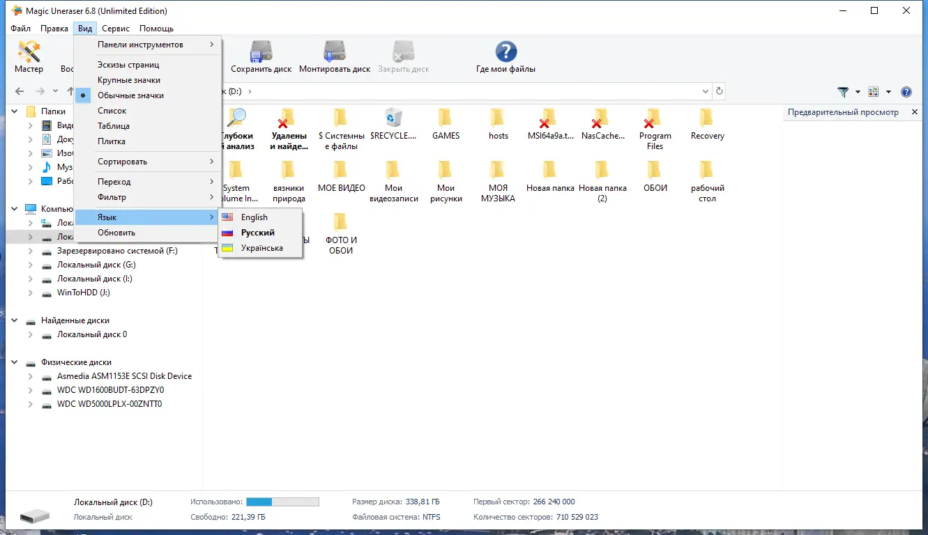 Magic Uneraser — это многофункциональный инструмент, предназначенный для восстановления удалённых файлов, независимо от причины их удаления или типа устройства хранения. Поддержка всех популярных файловых систем, таких как NTFS, FAT, exFAT, HFS+, APFS, Ext2/3/4, XFS, Btrfs, ReiserFS, ZFS и UFS, гарантирует эффективность в самых сложных случаях. Программа способна находить и восстанавливать файлы с любых носителей: жестких дисков, SSD, флэш-накопителей, карт памяти и даже устройств мобильных телефонов. Моментальный анализ позволяет быстро определить возможность восстановления данных, а встроенный просмотр файлов облегчает выбор нужных объектов. Восстановление файлов, удалённых без использования корзины или после форматирования диска, осуществляется без проблем.